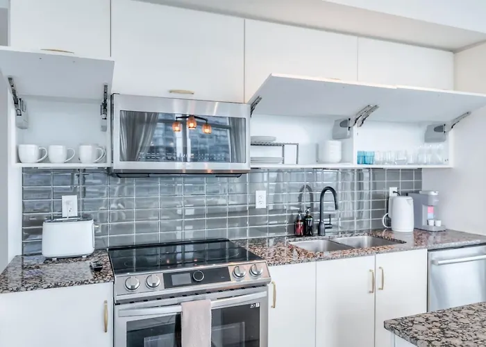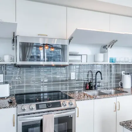Nella villa Downtown 2Br Condo With City Views And Free Parking c'è un angolo cottura attrezzato in cui troverai un bollitore elettrico, una lavastoviglie e un frigo. Gli ospiti potranno gustare la cucina canadese presso il ristorante 360 The Restaurant at the CN Tower, a 600 metri. L'aeroporto di Toronto-City Billy Bishop si trova a 10 minuti d'auto dalla villa Downtown 2Br Condo With City Views And Free Parking, mentre la stazione della metropolitana Union è a circa 10 minuti a piedi.